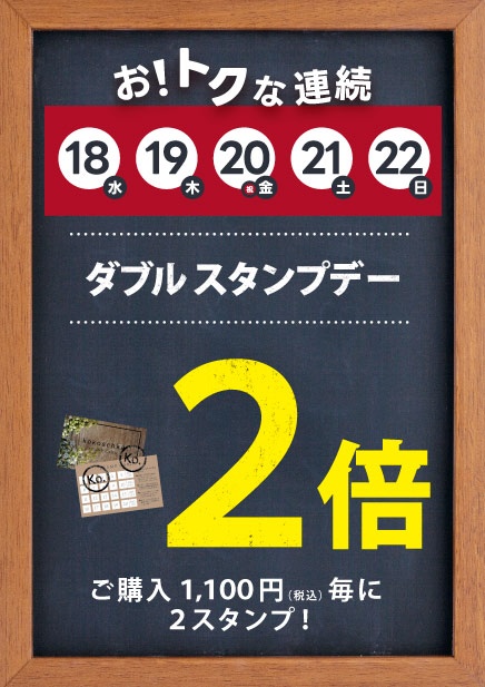 ◆本日【 連続ダブルスタンプデー『 18日~22日 』】スタンプカード